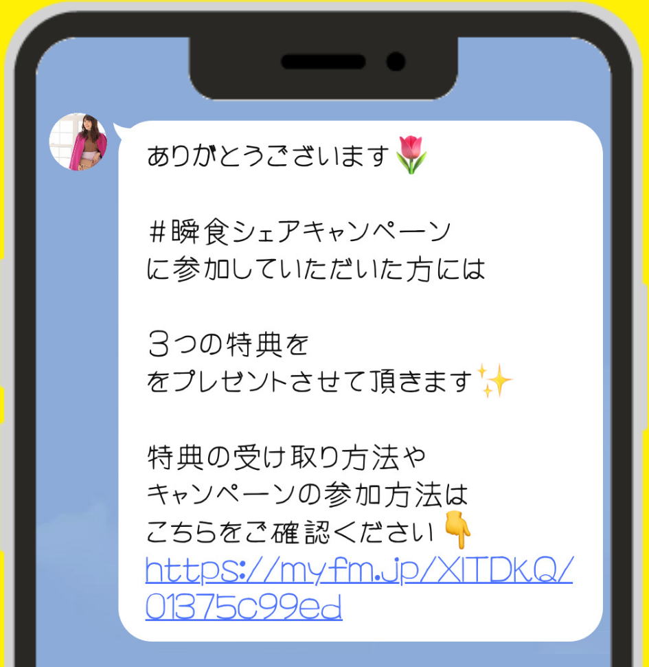 Twitterやインスタグラムで私の瞬食に関する記事をシェアいただいた方に